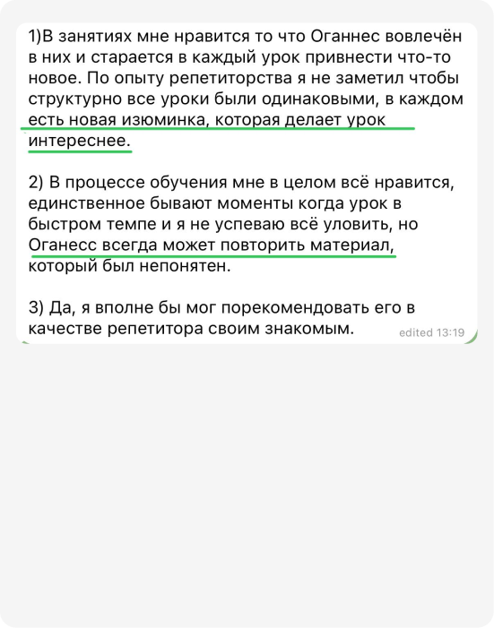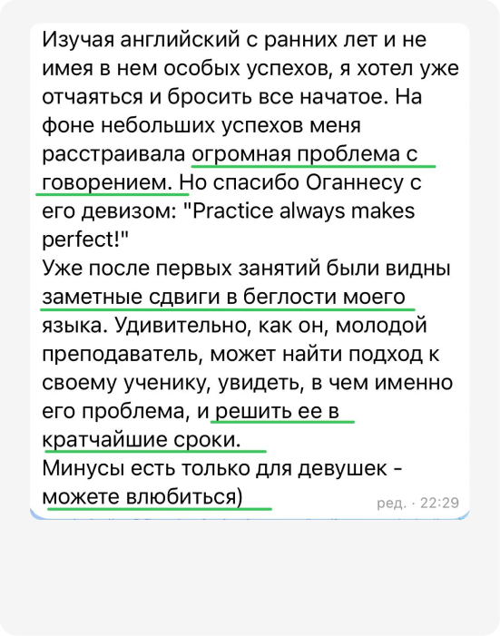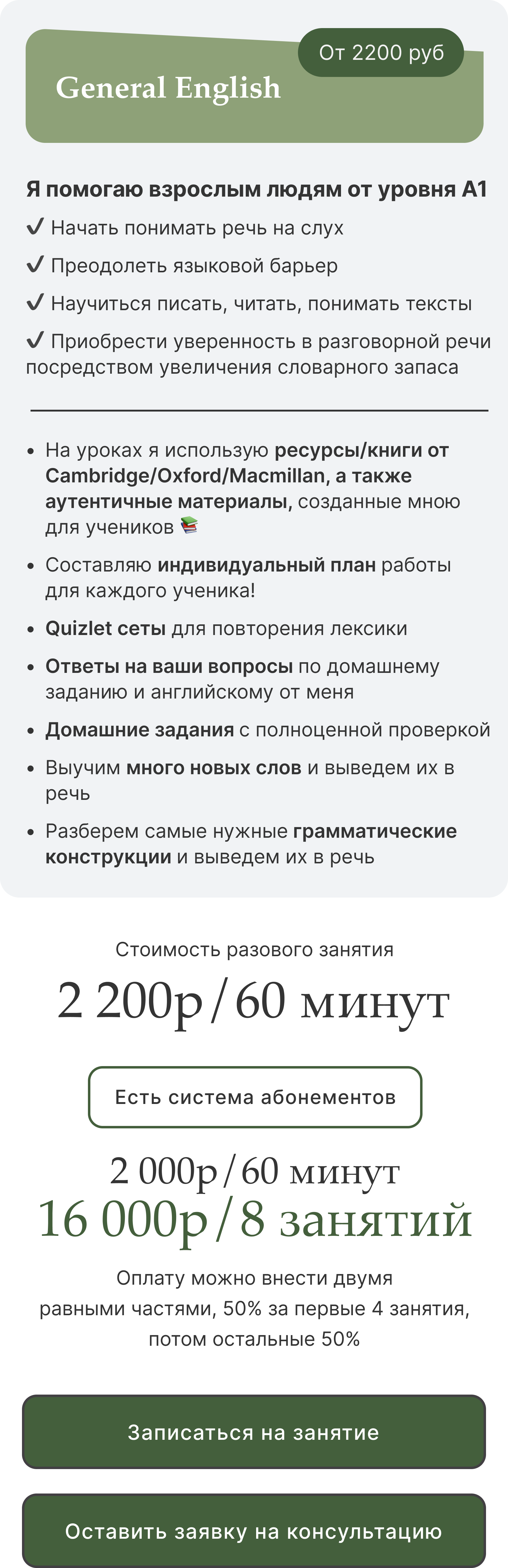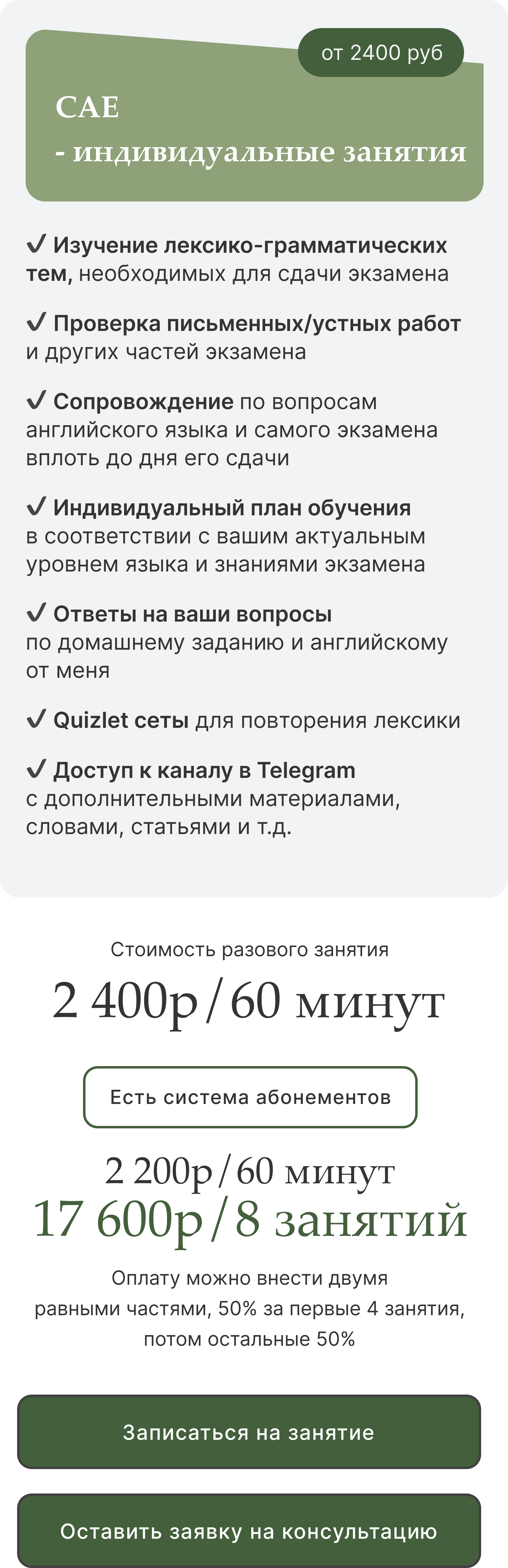 К этой цели мы будем идти вместе, разбирая задания экзаменационного формата и улучшая другие аспекты языка параллельно.