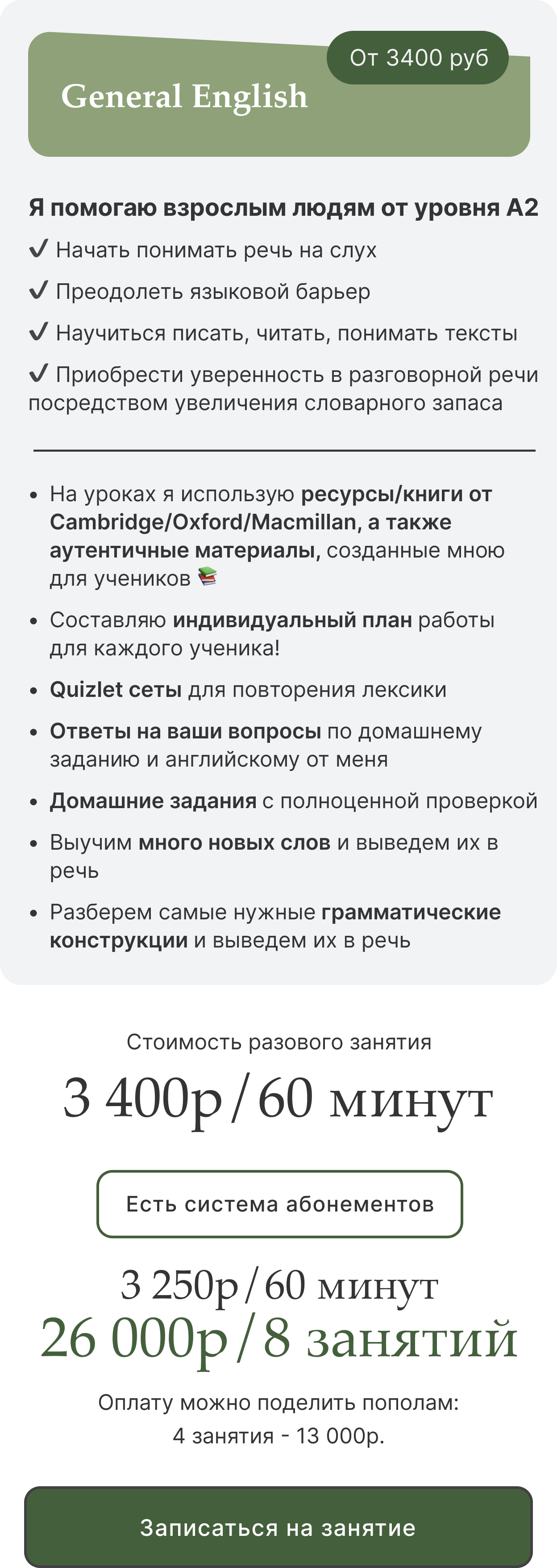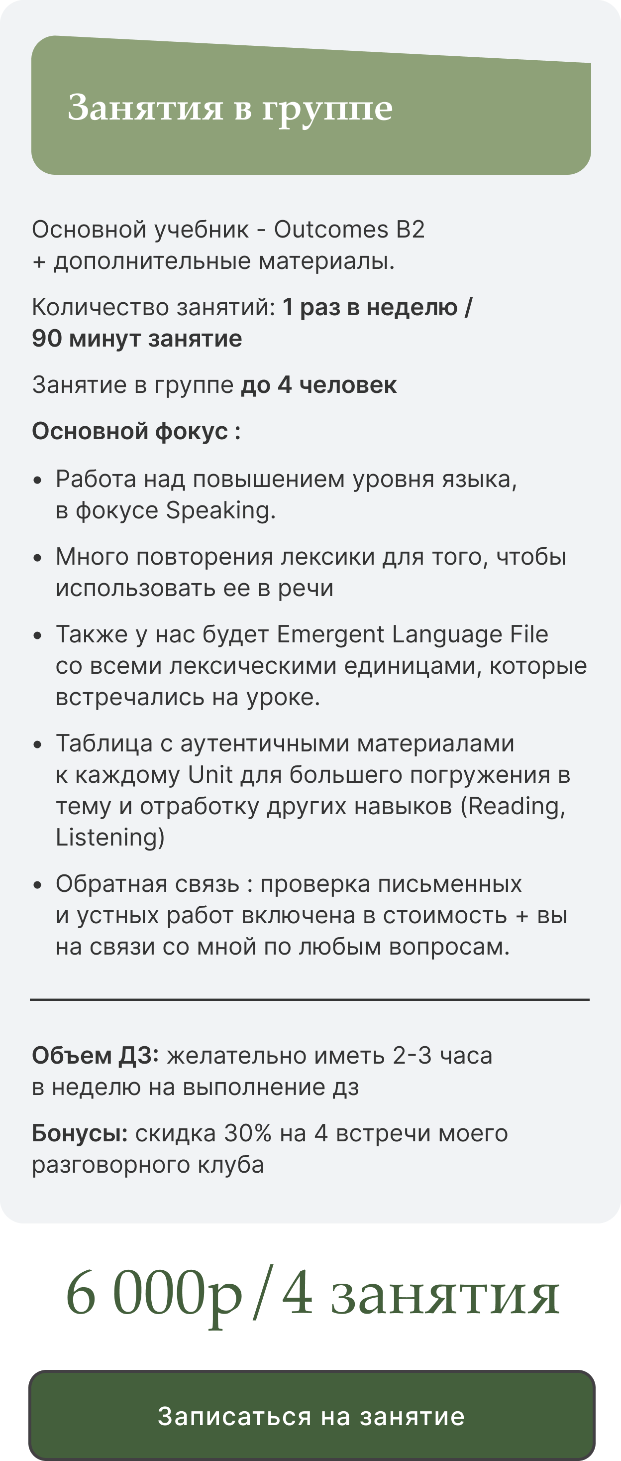 К этой цели мы будем идти вместе, разбирая задания экзаменационного формата и улучшая другие аспекты языка параллельно.